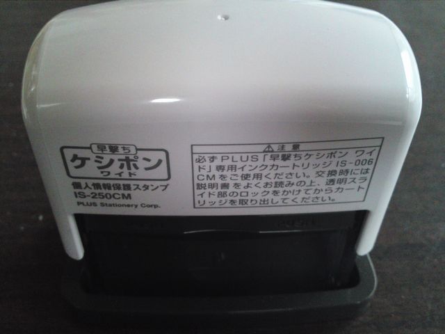 これはスタンプになっており、押すと下記の写真のようにアルファベットが印字されますので、あなたのご住所なお名前の上から押してしまえば、もう宛名シールは読めなくなってしまいます。